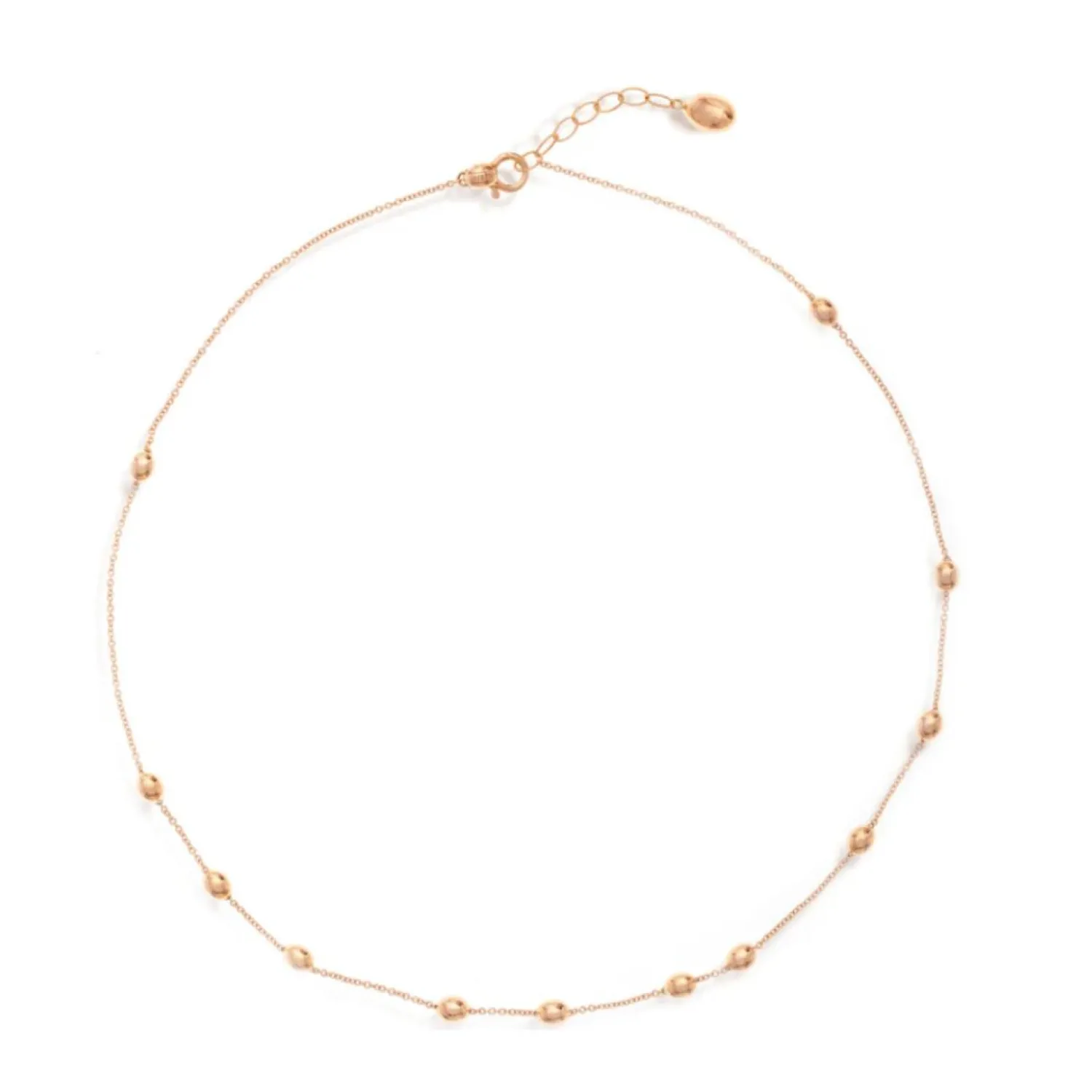 Deze armband, vervaardigd uit 18-karaats goud en met de hand gesmeed door meesterlijke ambachtslieden, belichaamt op sublieme wijze het concept van de ketting van Nanis: een tijdloze elegantie die ruimte biedt voor verschillende interpretaties. Het sieraad kan met overtuiging solo worden gedragen, maar zijn korte lengte maakt het ook ideaal als choker. Op deze manier blijft het collier altijd elegant in het zicht, een verfijnde en persoonlijke toevoeging aan iedere look.