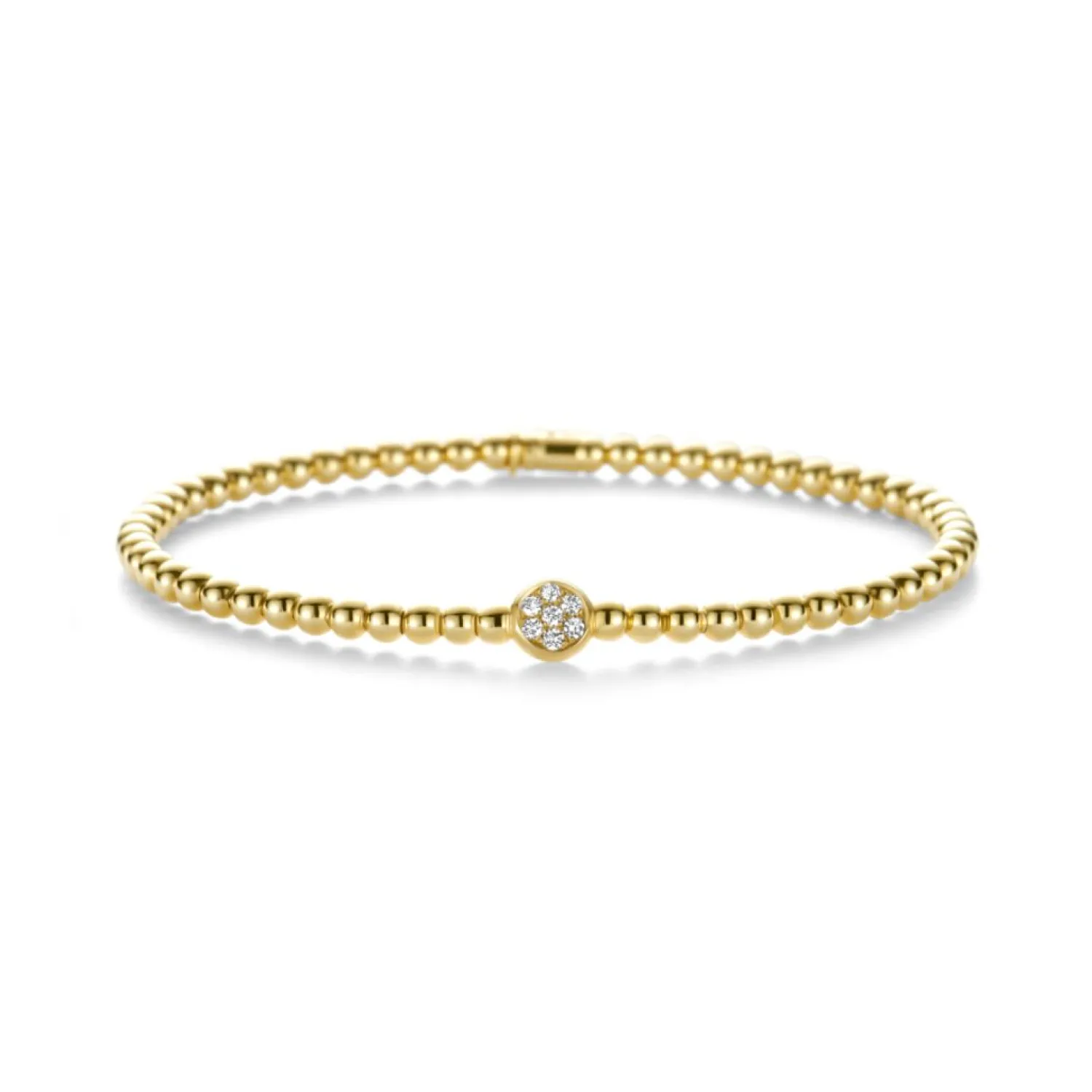 Eindeloos (want zonder sluiting), dat zijn onze Reflex armbanden. De gouden elementjes in deze armband zijn kogelrond en 4mm dik.