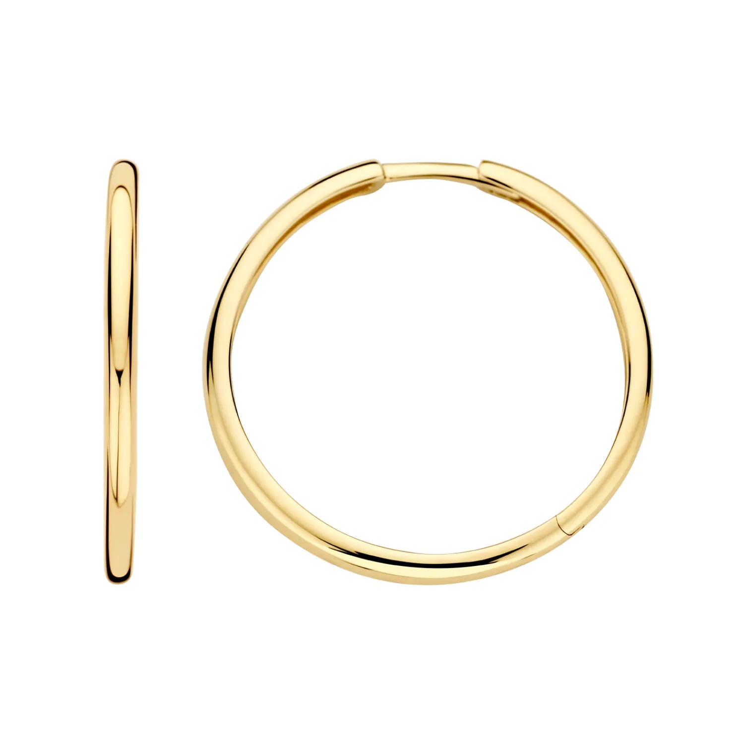 Deze klassieke, ronde, gladde oorringen van 14k geelgoud zijn een absolute must-have. Ze hebben een totale doorsnede van 25 mm en zijn voorzien van een kliksluiting.