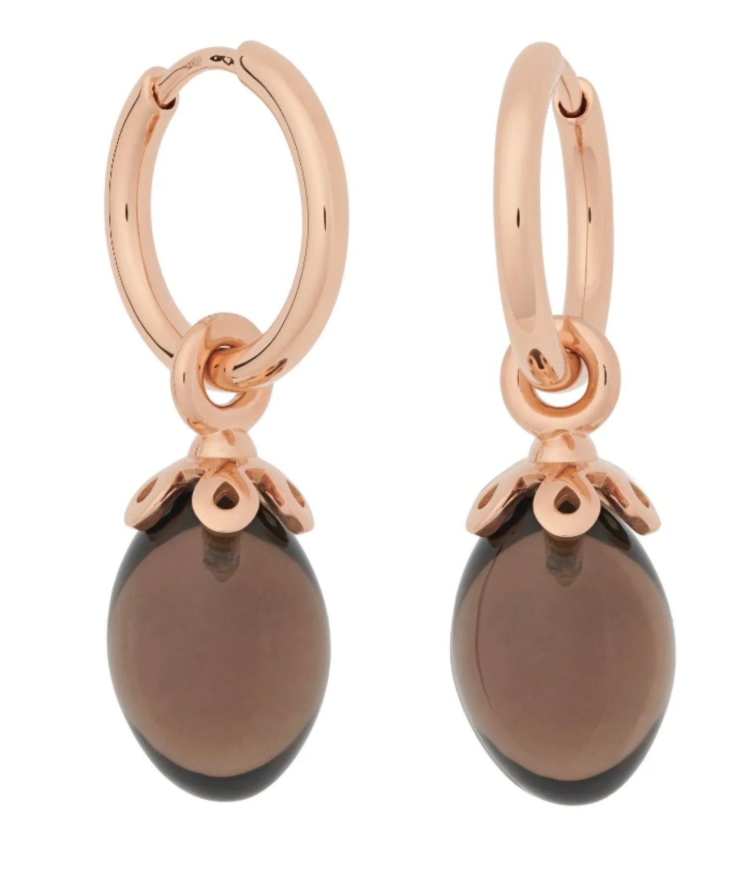 Cabochon geslepen rookkwarts druppels onder een als blaadjes gevouwen Toujours Ajour motiefje.