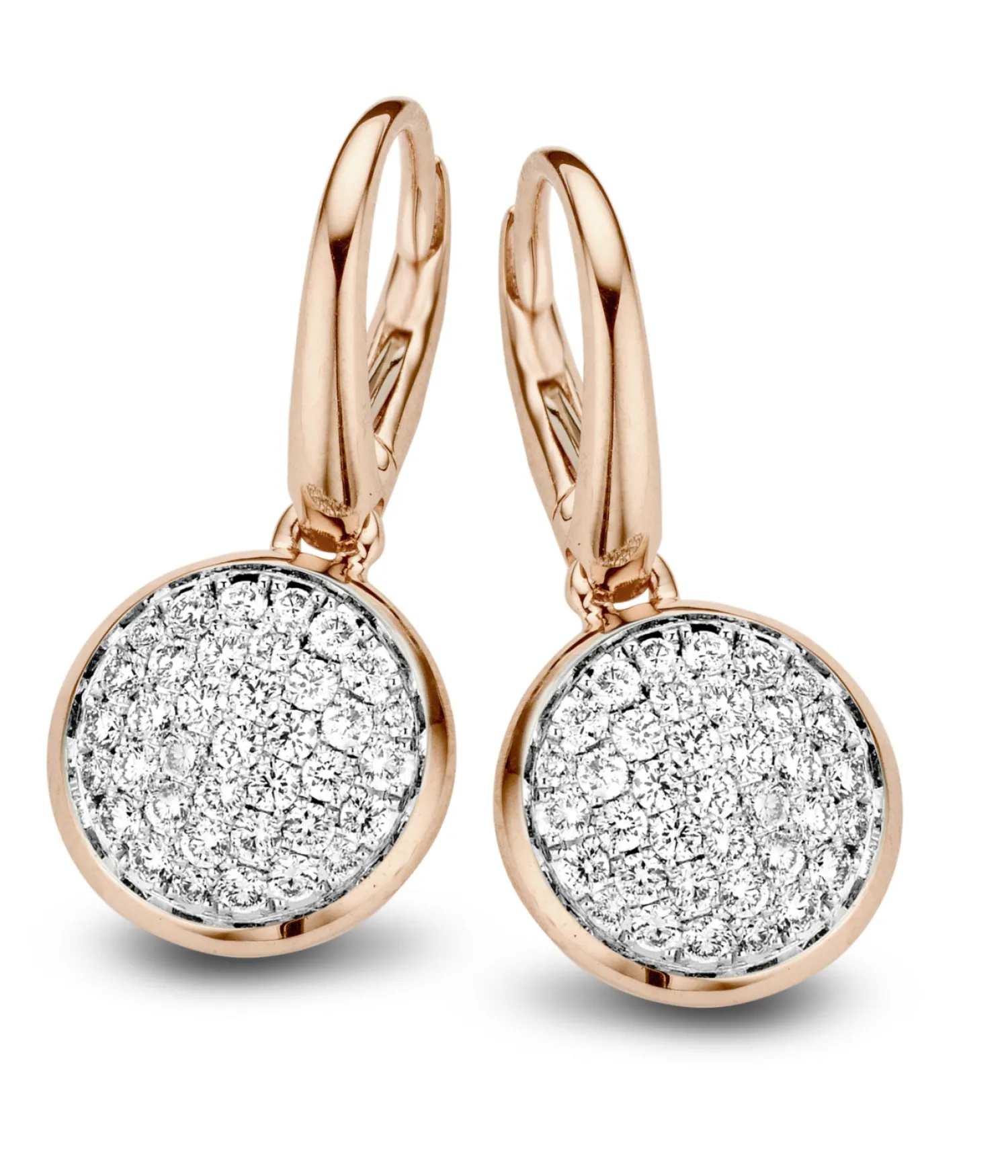 De oorhangers zijn gemaakt van 18 karaat rose goud en heeft 0.65 ct aan wit diamant.