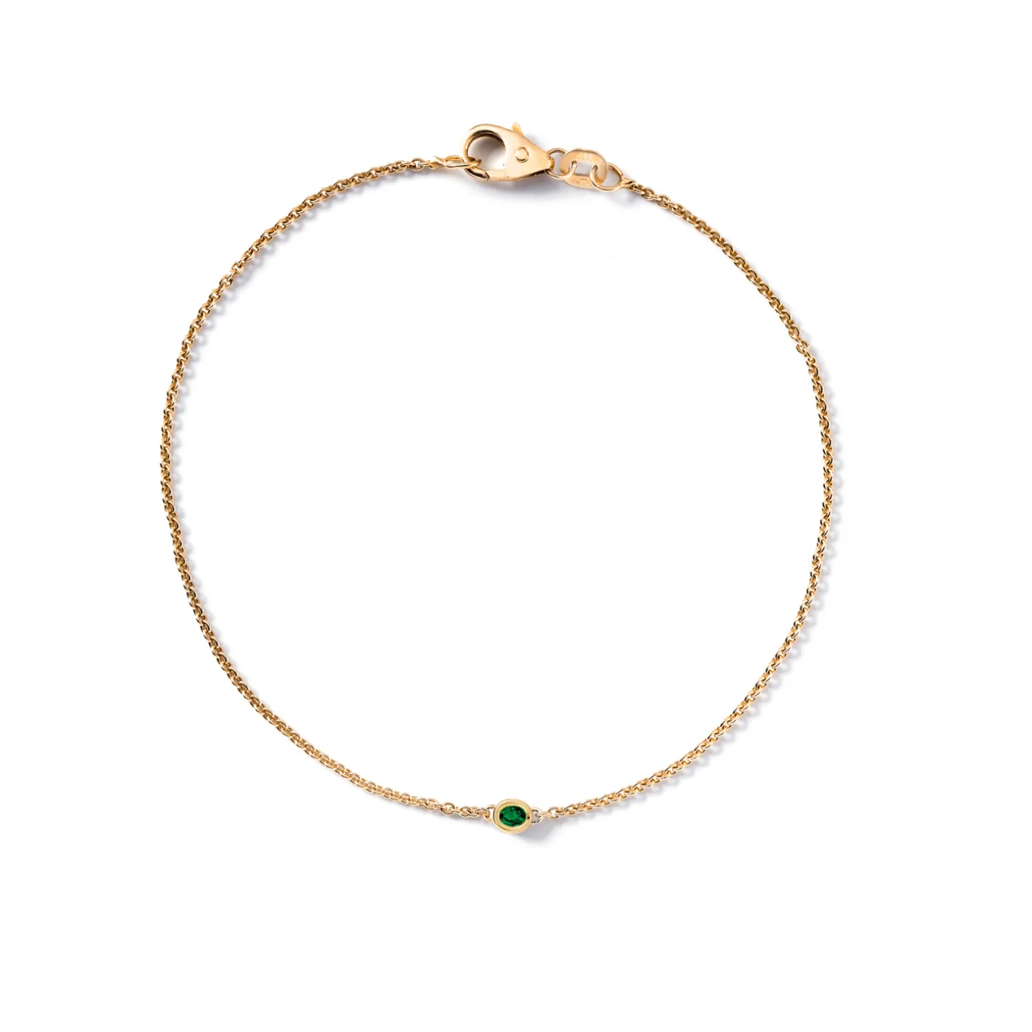 Een 14 karaat geel gouden armband met een smaragd als steen.