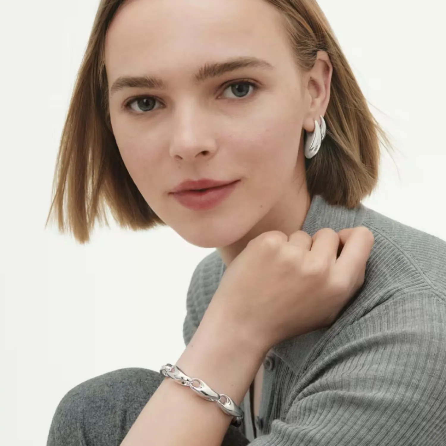 Deze sculpturale sterling zilveren oorbel heeft de kenmerkende vorm van de Reflect-collectie, ontworpen door sieradenontwerpster Jacqueline Rabun