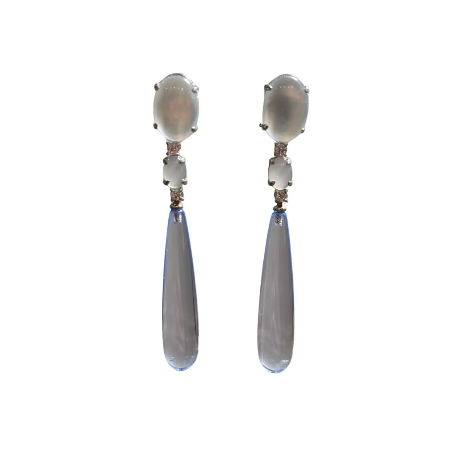 18 karaat witgouden oorhanger met Chalcedoon, aquamarijn en diamant.