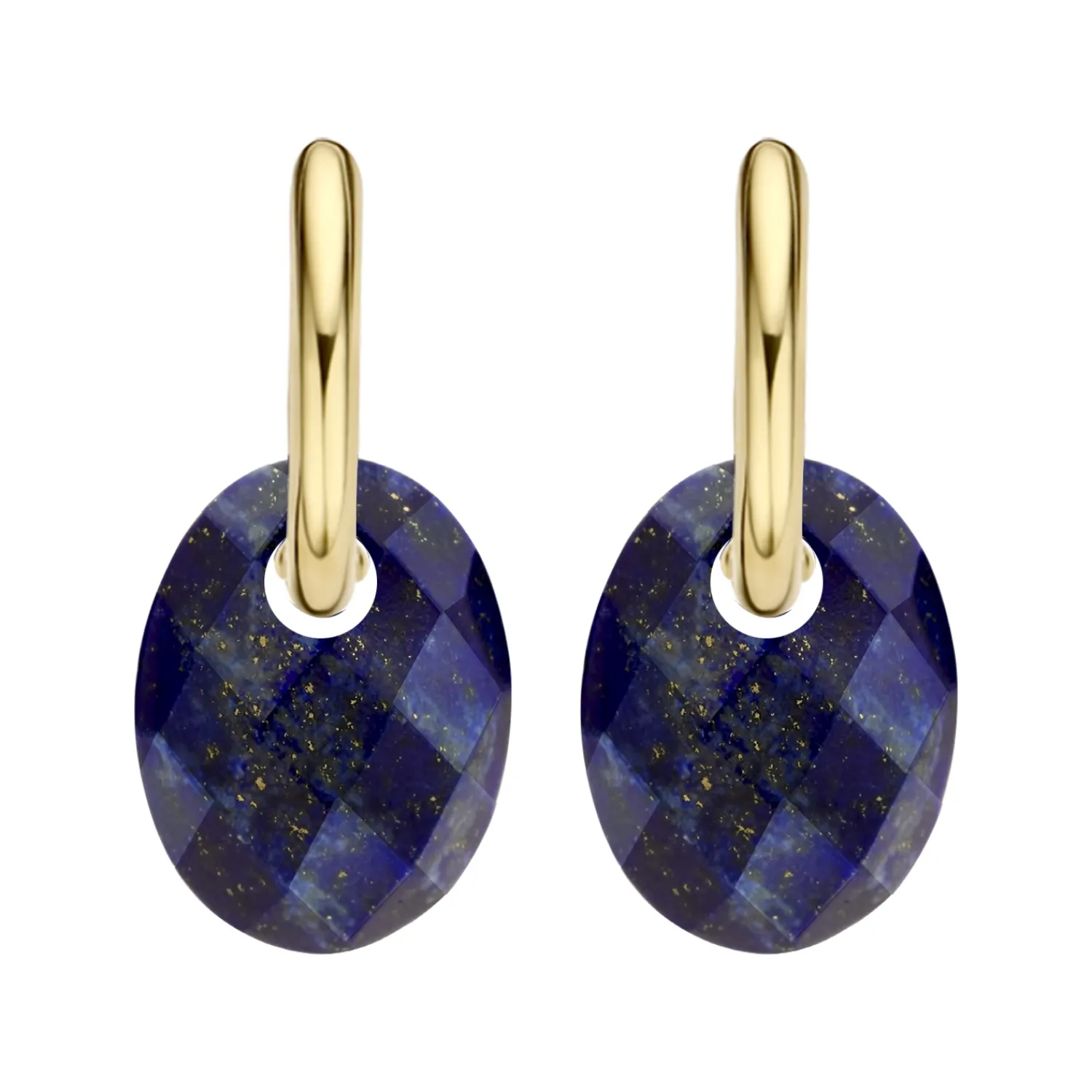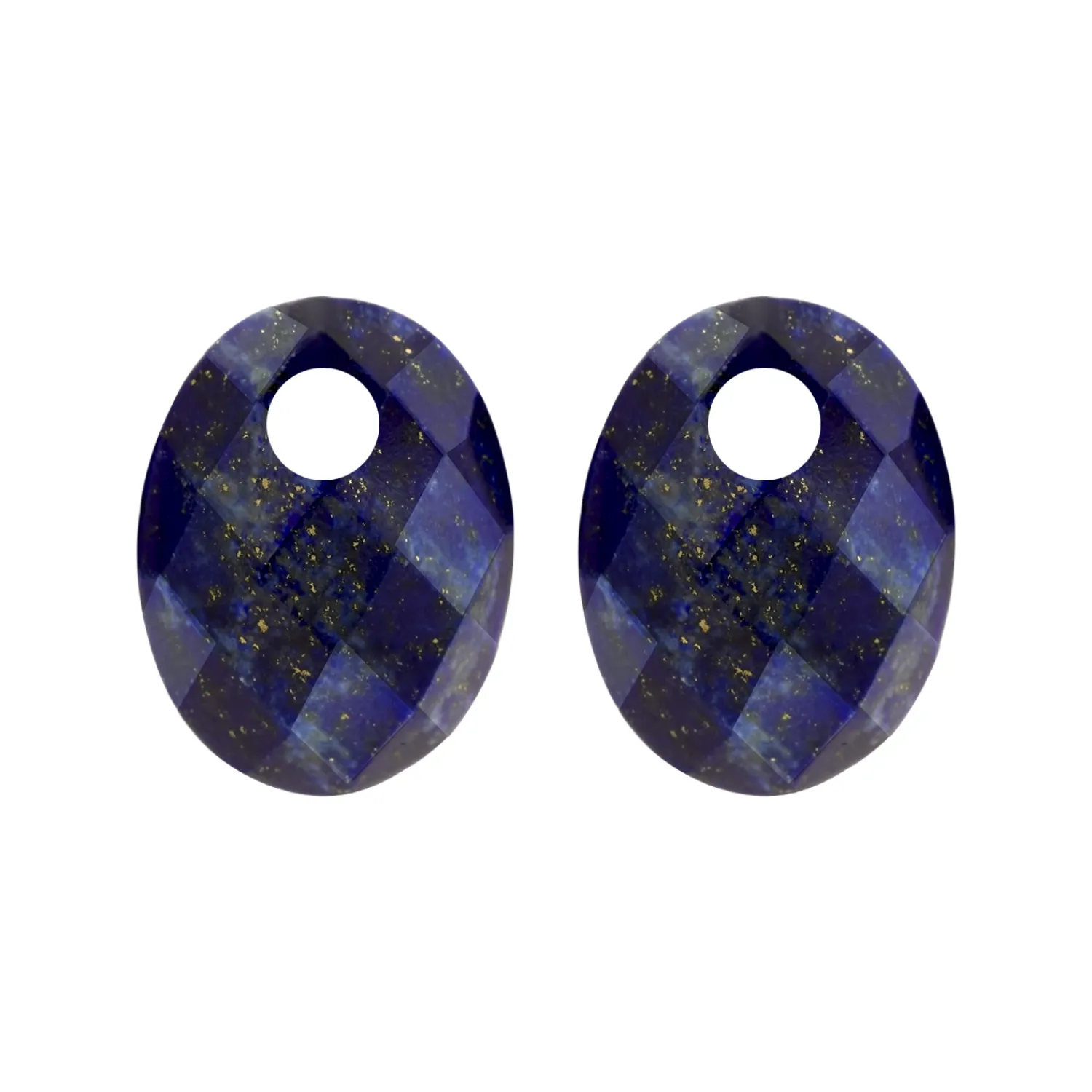 Hou je van speels en stylish? Dan zijn deze natuurstenen oorbedels iets voor jou. De ovaalvormige bedels zijn gemaakt van lapis lazuli met facetslijpsel. Ze zijn 20 mm hoog en passen om oorringen met maximaal 3 mm doorsnede. Prachtig samen met gouden oorbedels van Blush.