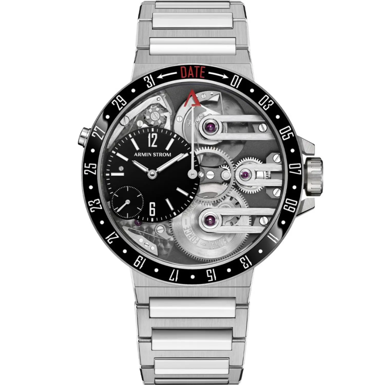 Armin Strom heeft de alomtegenwoordige datumfunctie volledig geherinterpreteerd in de Orbit, ‘s werelds eerste horloge met een on-demand datumaanduiding op de lunette. De Orbit is gemaakt van staal met een keramische lunette en een geïntegreerde stalen armband en voegt een sportieve touch toe aan de eerste column-wheel retrograde datum bovenop het micro-rotor automatische uurwerk met een koppelbegrenzende loop voor optimale chronometrische prestaties gedurende de autonomie van het horloge.