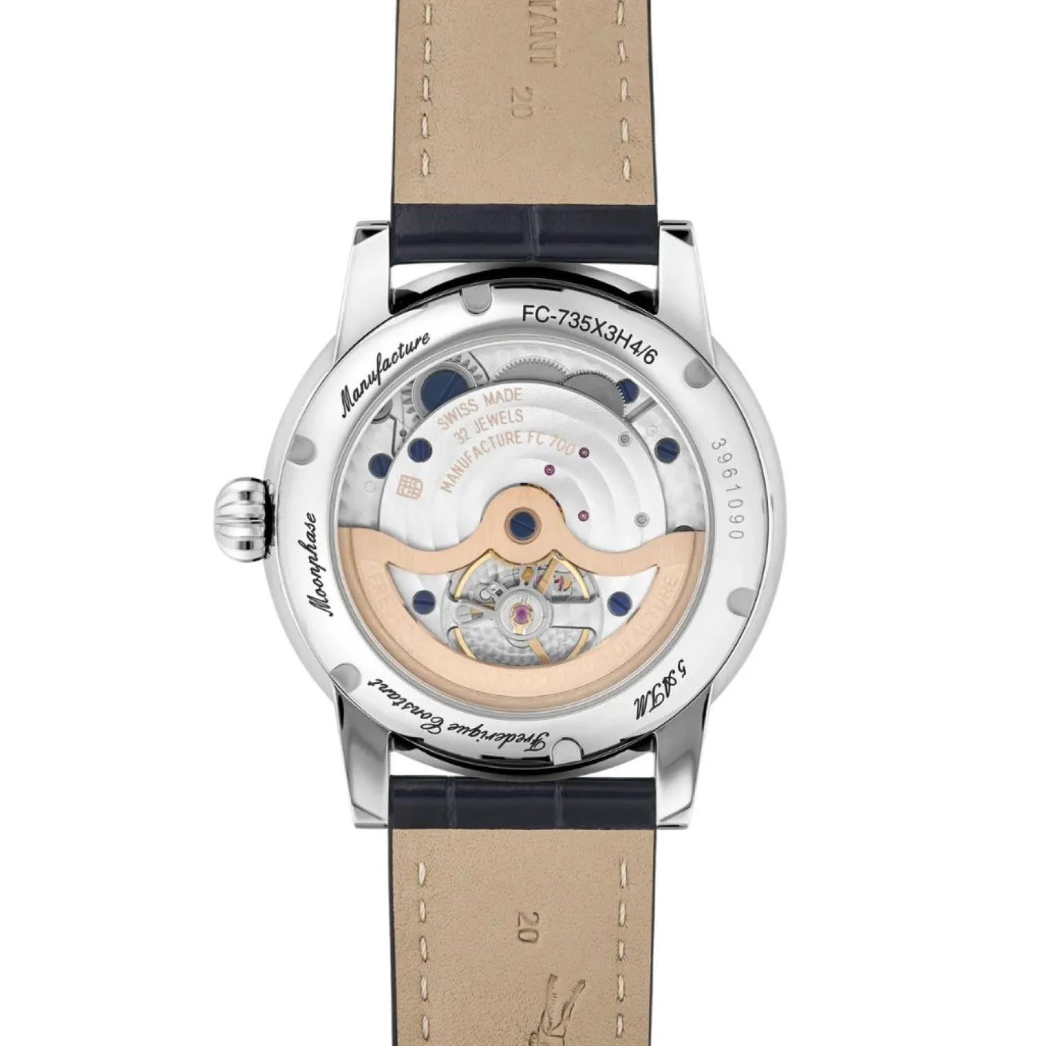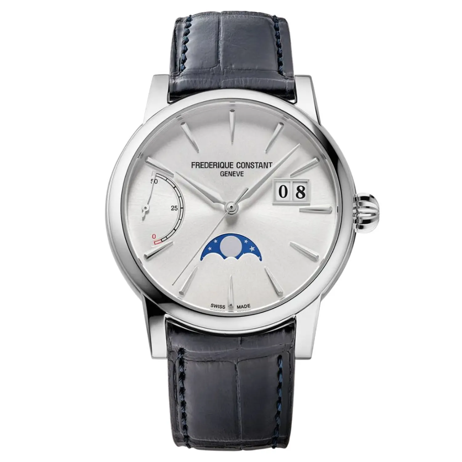 De Classic Power Reserve Big Date Vervaardiging, het tot leven brengen van de eenendertigste Vervaardiging Frederique Constant kaliber, de FC-735. Het is het eerste kaliber van de firma om een grote datum, een maanfase en een gangreserve indicator – nu voor een totaal van 50 uur., De laatste wordt aangegeven op 9 o’clock door een slanke, toegewijde hand reizen langs een boog gemarkeerd van 0 tot 50, eindigend in een rode zone waarschuwing dat het tijd is om wind het horloge voordat het stopt.
